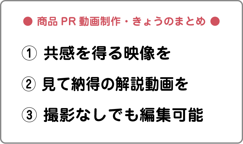 ここはテレビ番組スタイルの、テンポよく展開する商品プロモーション動画が欲しいところです。当社でも、こうした部分に留意して制作を行なっています。
