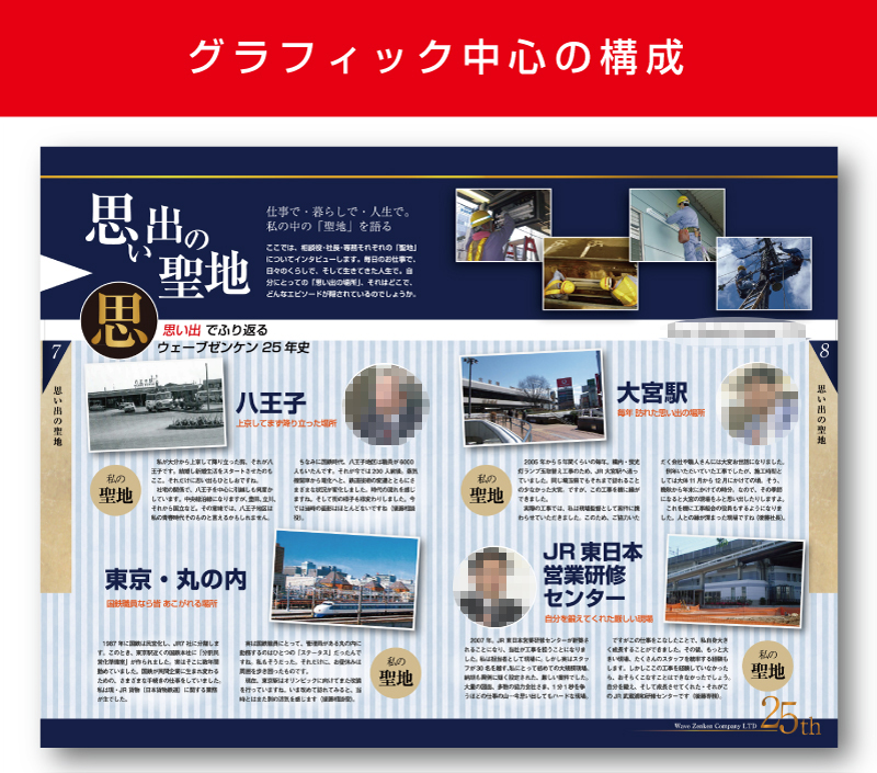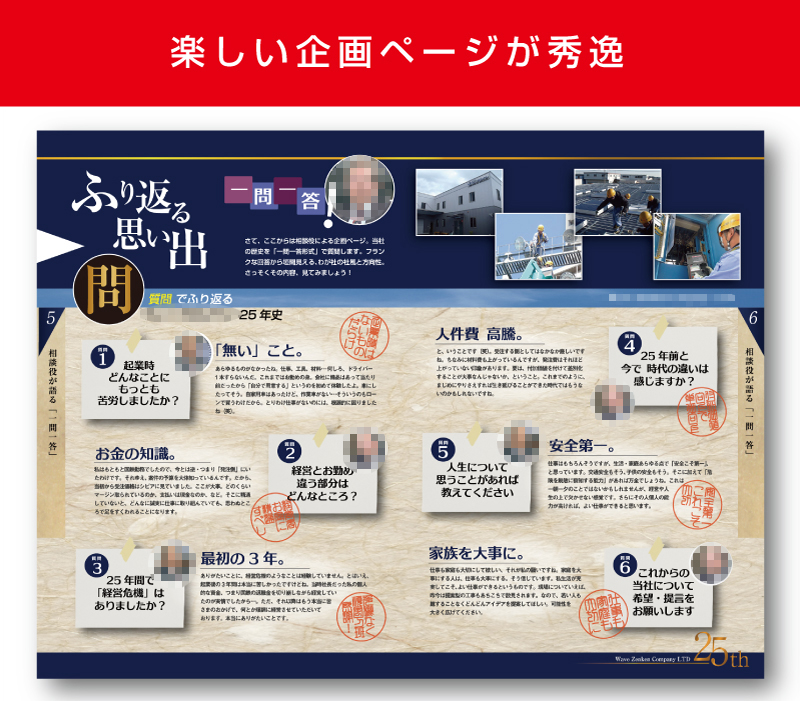 社史は「読んでもらってこそ」価値があります。文字だらけの社史など問題外。見て楽しい、読んで面白い誌面こそ、受け手に喜ばれるものです
