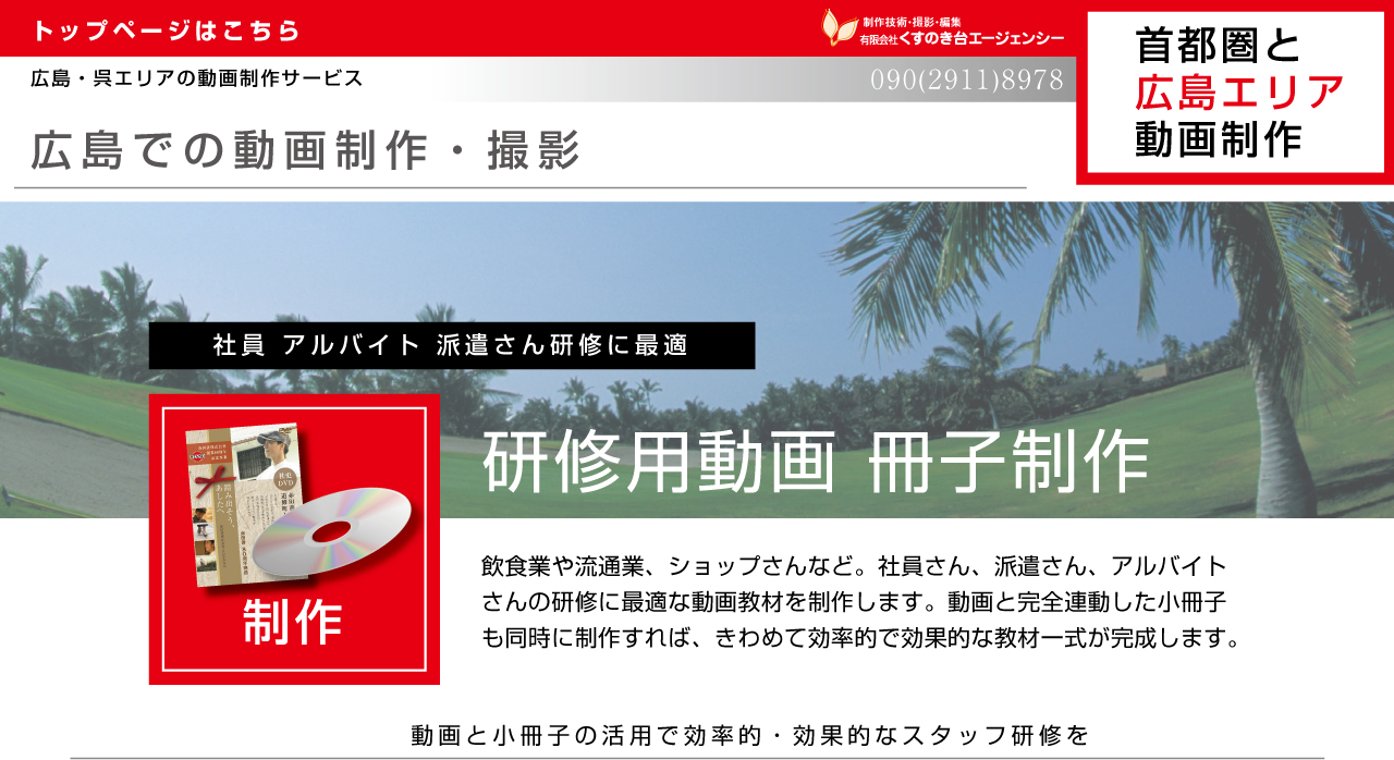 広島エリア 動画制作サービス(4) 研修用動画・冊子制作 2020/06/19 工場やショップさんなど。スタッフ研修に最適な「動画」を制作してみてはいかがでしょうか。動画なら短時間に仕事のエッセンスを効率的に伝えることができます。す。 これはショッピングモールでの売上報告の仕方を解説した作例。細かな動作もすべて絵に変換し、新人さんに分かりやすく伝えます 業務の基礎的な部分も、おろそかにせずきちんと「模範演技」。これを映像で見せてあげるだけで、実施率は驚くほど改善されるものです