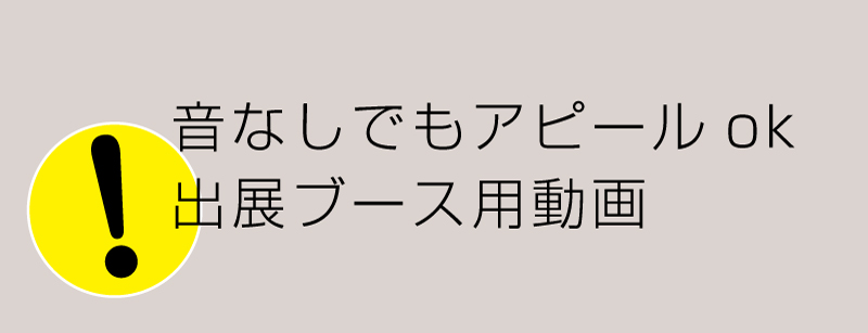 なぜなら、会場ブースでは音を出すことを禁止しているエリアもあります。仮に出せても大音量ははばかられます。それゆえ。音なしでもしっかりメッセージが伝わる構成で制作する必要があるのです。