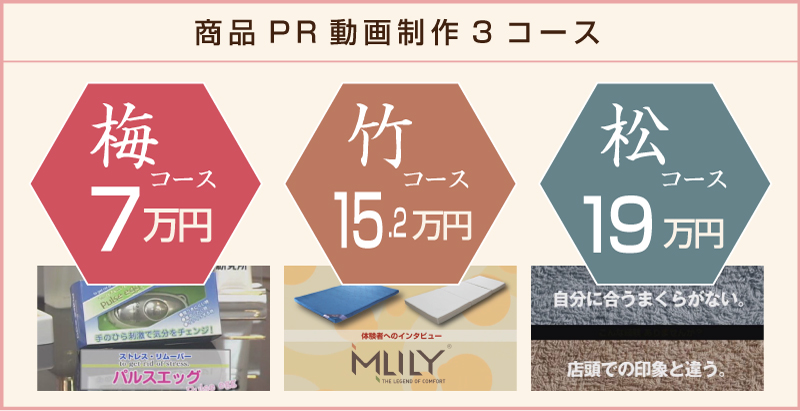 テレビコマーシャルとはまた違う、きわめて「実用的な」宣伝ツール。それが「商品プロモーション動画制作」。当社では、お客さまのご用途に合わせたフレキシブルな映像制作サービスを行っています。ぜひご検討くださいませ。