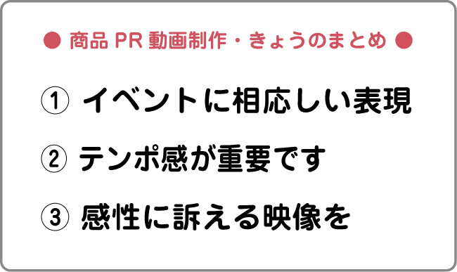 そんな商品種ですから、それをそのまま映像に表現しても退屈な動画になってしまうだけ。ここはひとつ、ひとひねりあるアイデアがほしいところです。