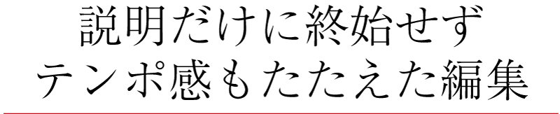 そして上記の演出プランに合わせて留意したのが「見たくなる気持ちを盛り上げるテンポ感」。ついつい見入ってしまうような、スピード感のある作風を目指しました。